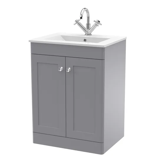nuie Classique 600mm Floor Standing 2-Door Vanity with Basin - 1 Tap Hole - Satin Grey