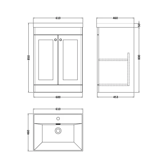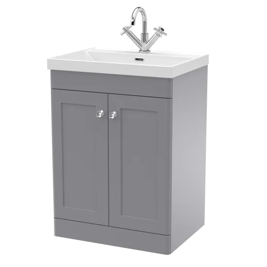 nuie Classique 600mm Floor Standing 2-Door Vanity with Basin - 1 Tap Hole - Satin Grey
