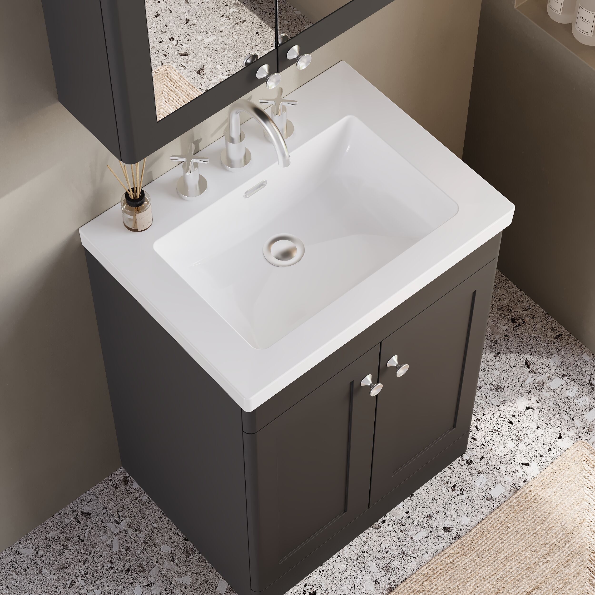 nuie Classique 600mm Floor Standing 2-Door Vanity with Basin - 3 Tap Hole - Soft Black
