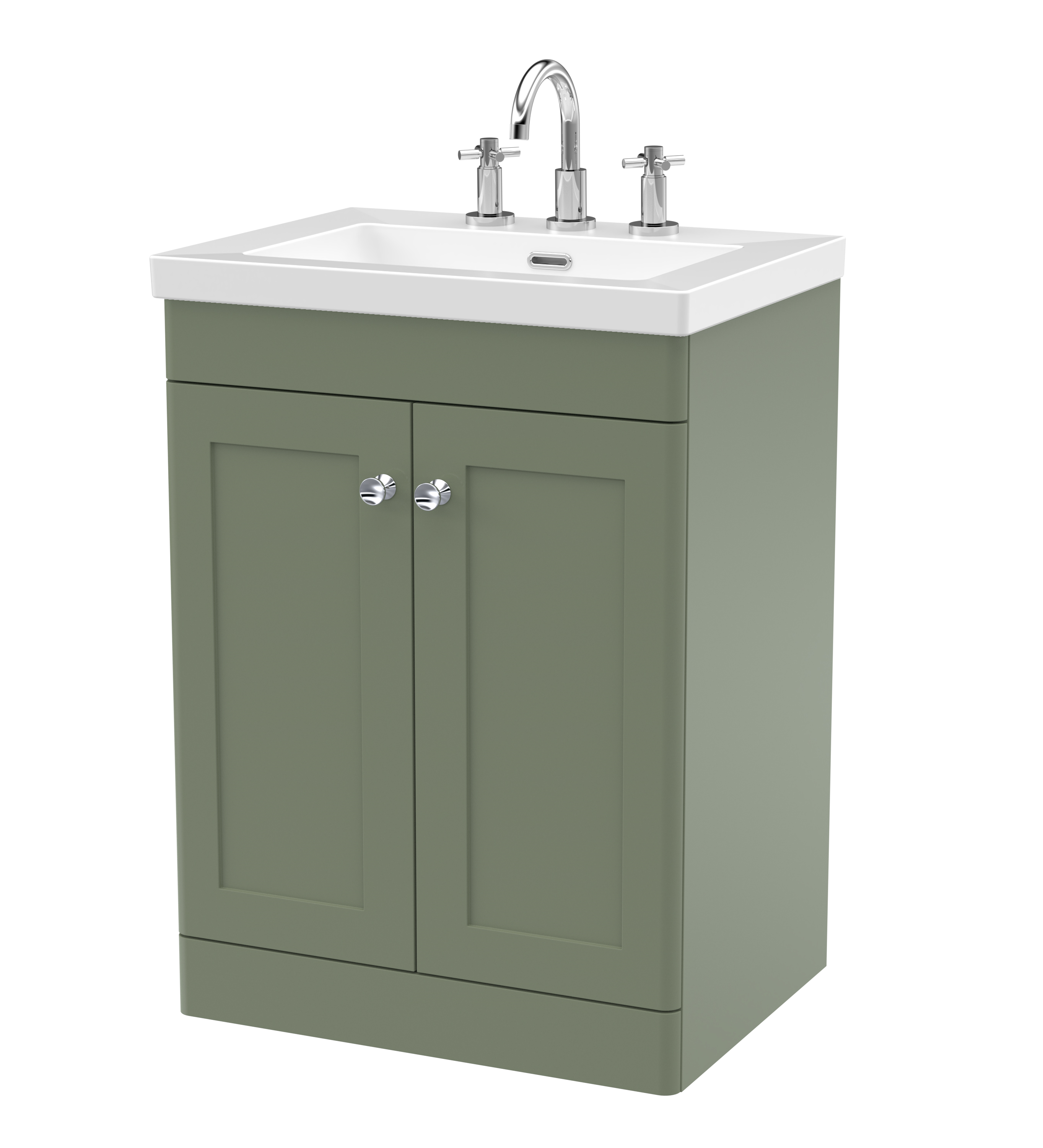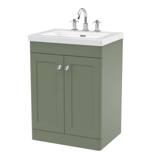 nuie Classique 600mm Floor Standing 2-Door Vanity with Basin - 3 Tap Hole - Satin Green