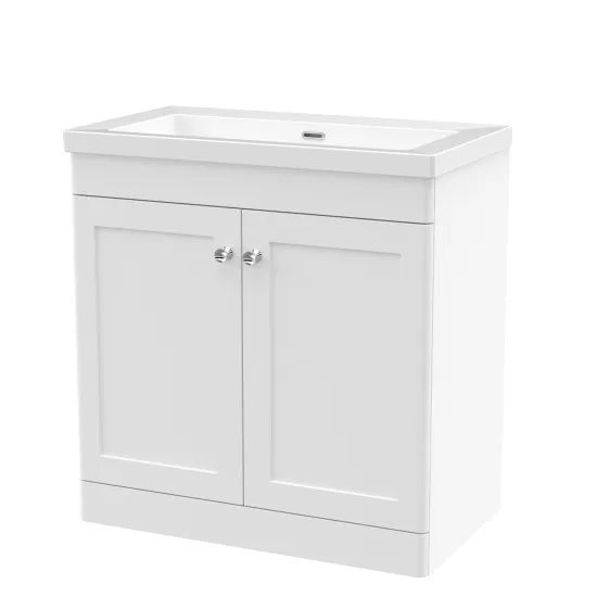 nuie Classique 800mm Floor Standing 2-Door Vanity with Basin - 0 Tap Hole - Satin White
