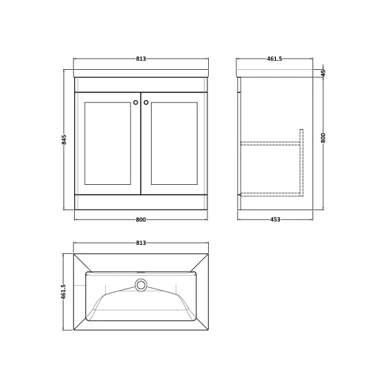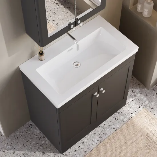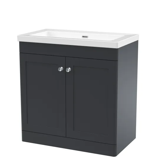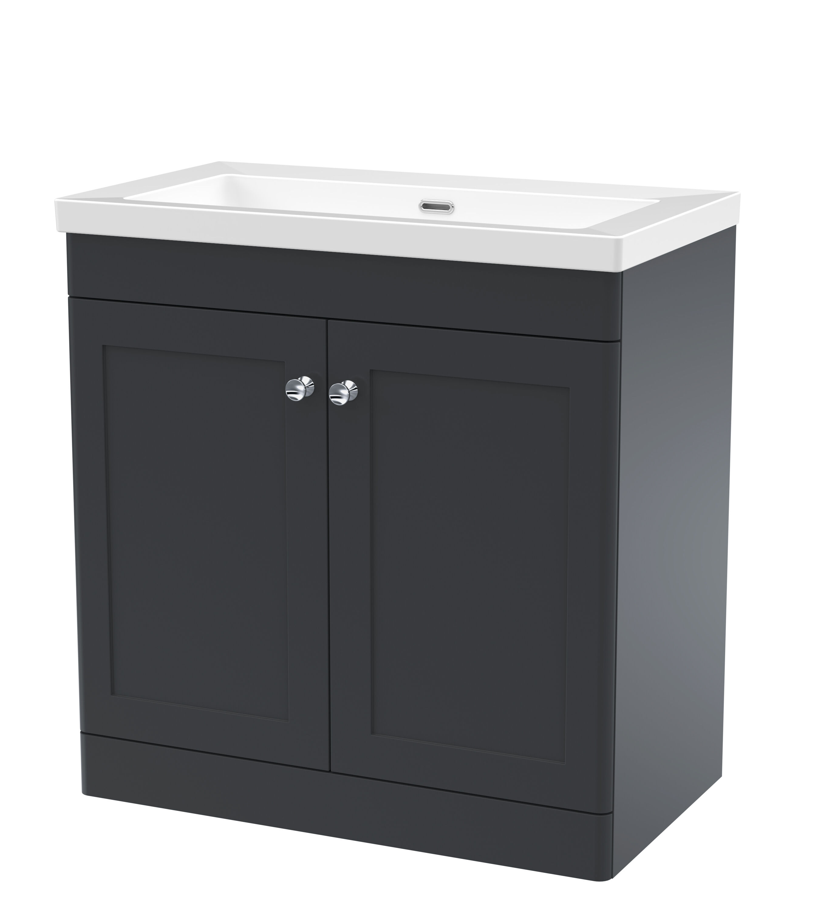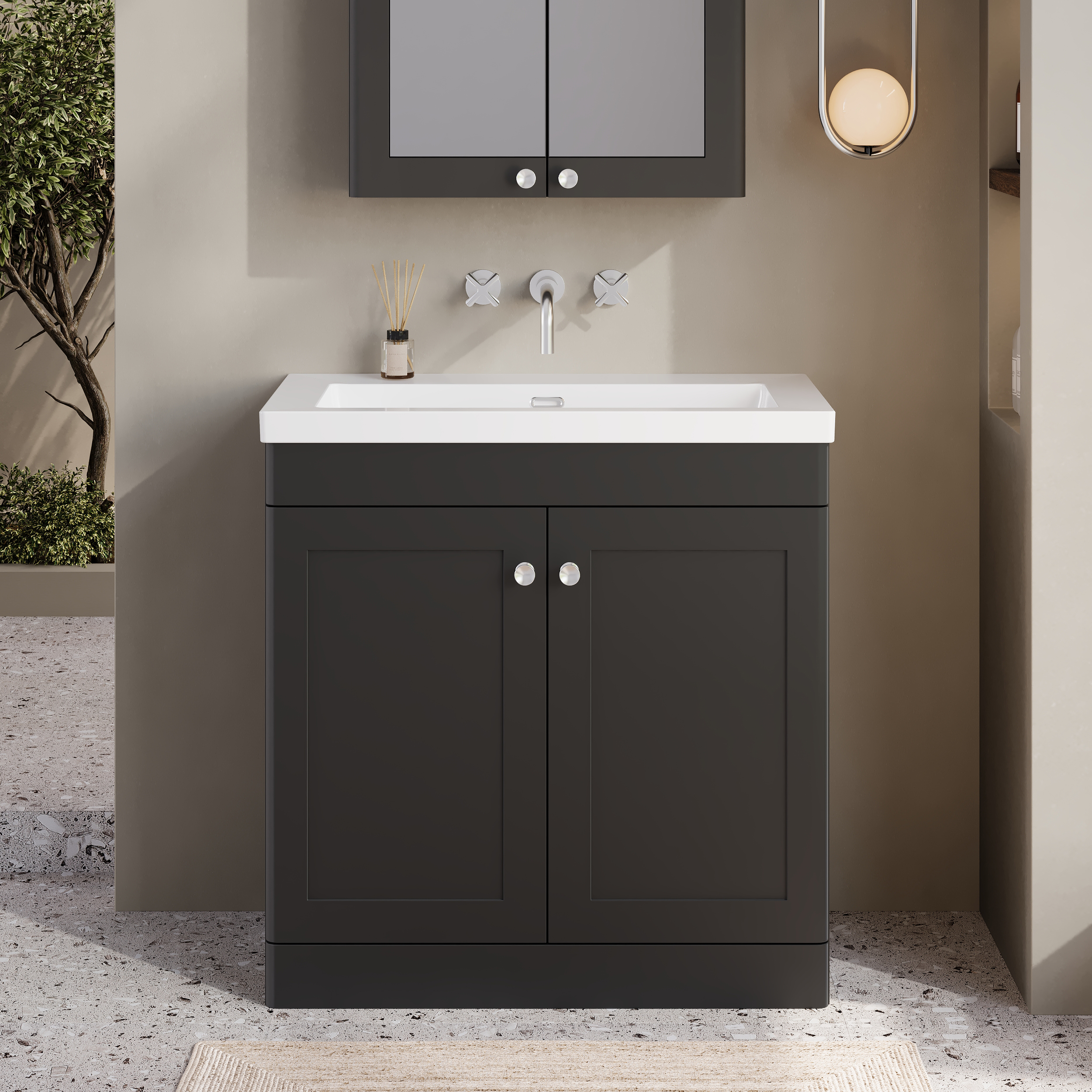 nuie Classique 800mm Floor Standing 2-Door Vanity with Basin - 0 Tap Hole - Soft Black