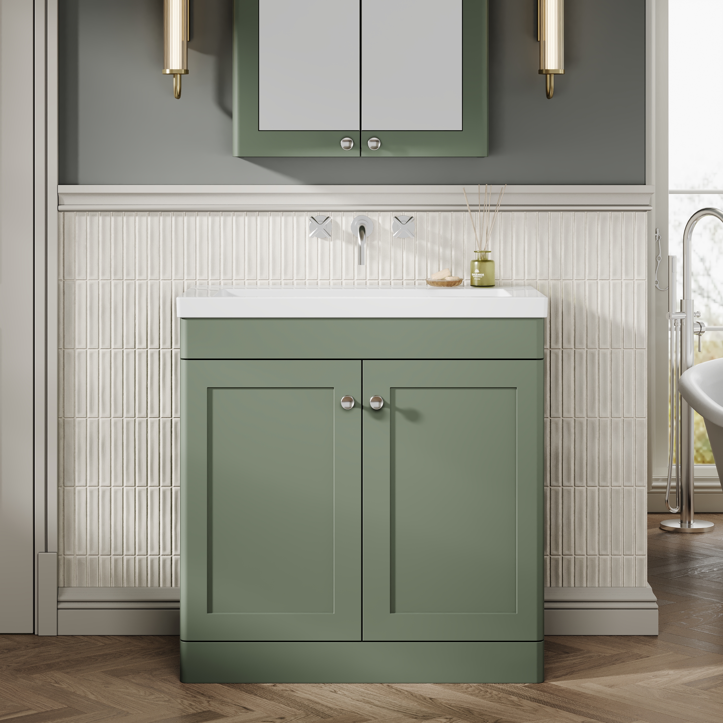nuie Classique 800mm Floor Standing 2-Door Vanity with Basin - 0 Tap Hole - Satin Green