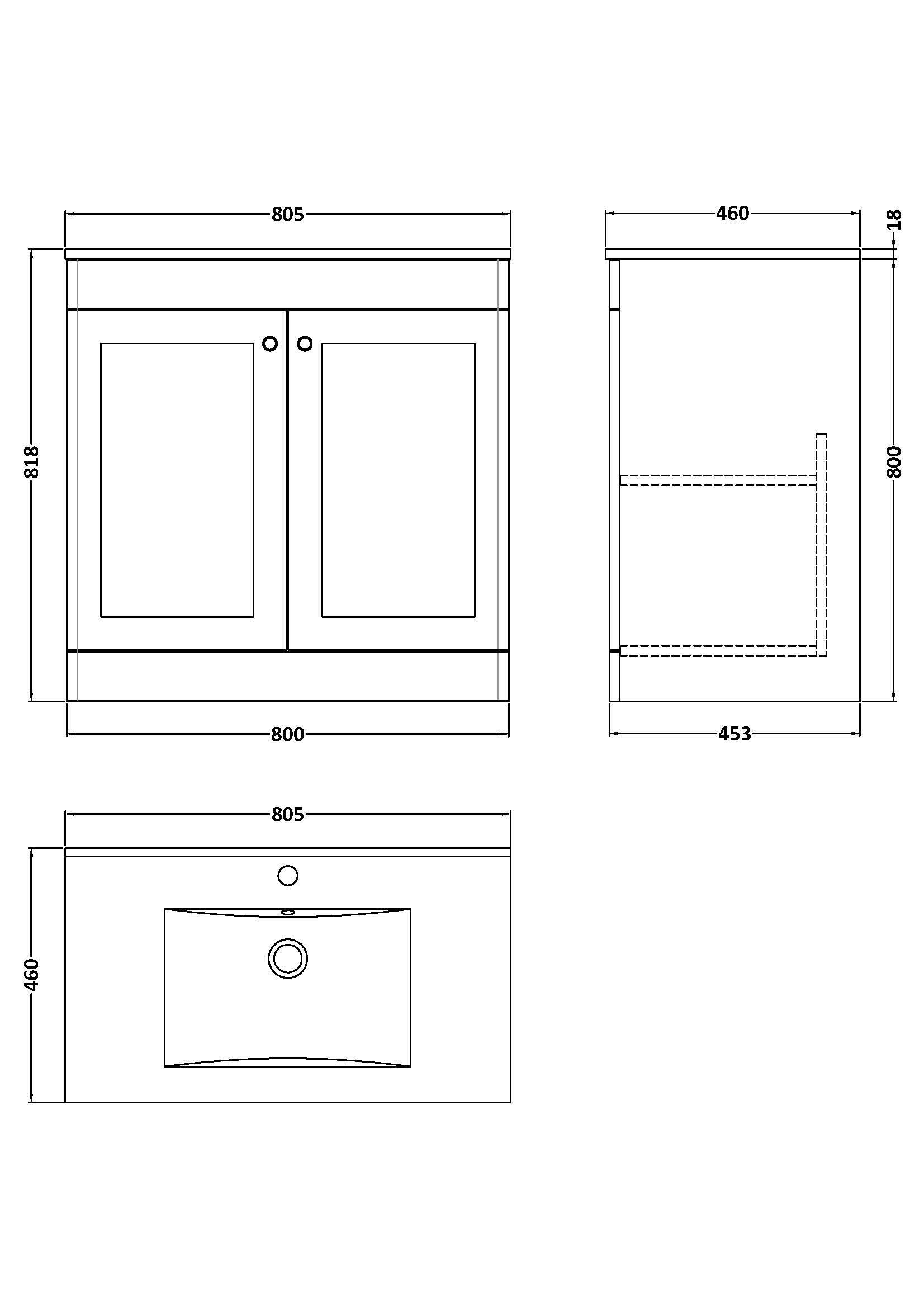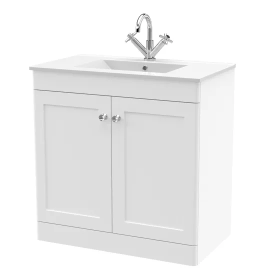 nuie Classique 800mm Floor Standing 2-Door Vanity with Basin - 1 Tap Hole - Satin White