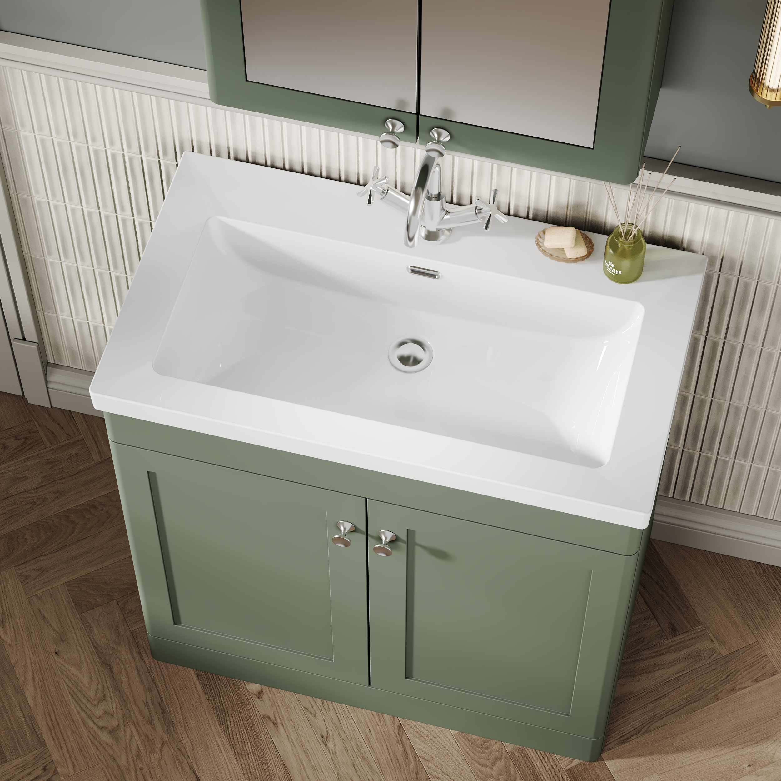 nuie Classique 800mm Floor Standing 2-Door Vanity with Basin - 1 Tap Hole - Satin Green