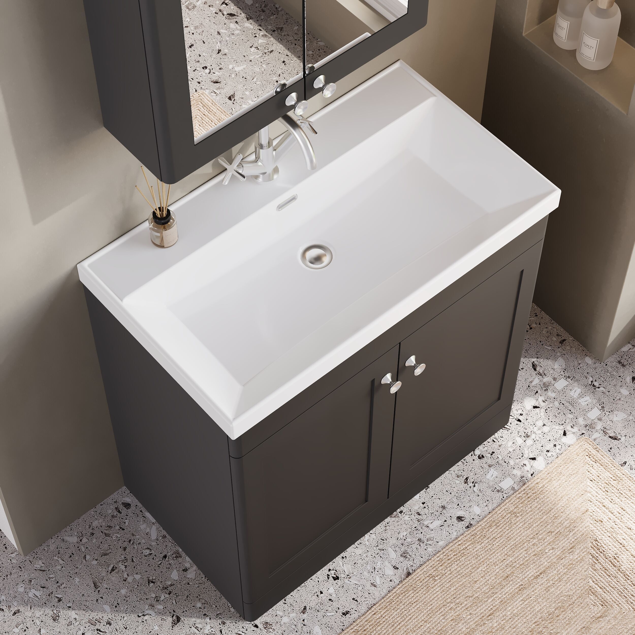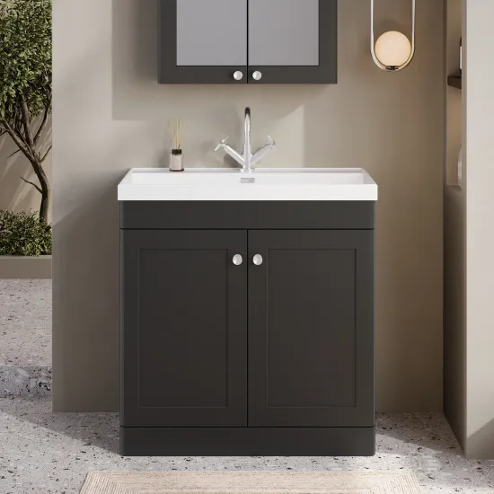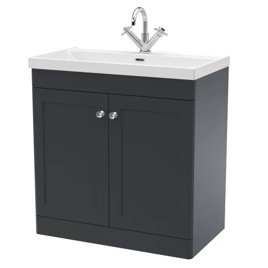 nuie Classique 800mm Floor Standing 2-Door Vanity with Basin - 1 Tap Hole - Soft Black