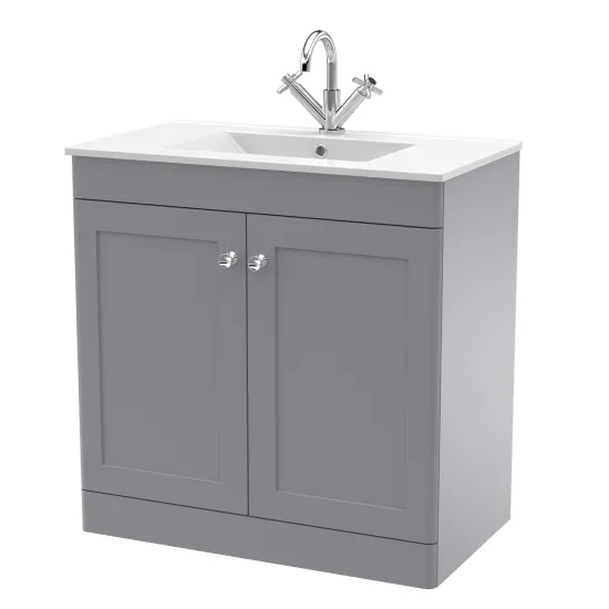 nuie Classique 800mm Floor Standing 2-Door Vanity with Basin - 1 Tap Hole - Satin Grey
