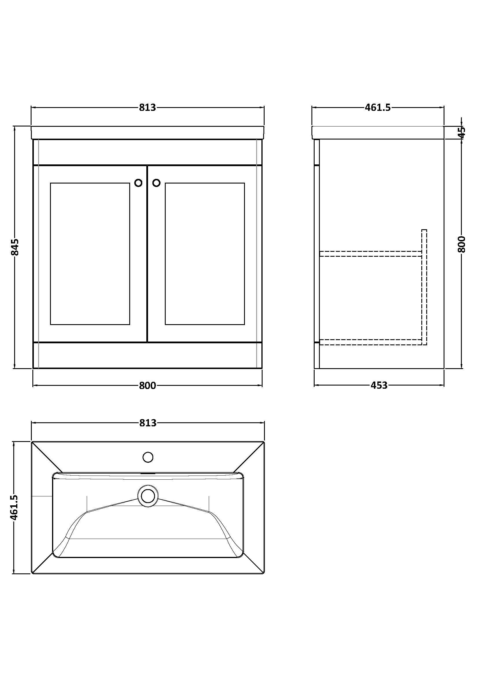 Supplied with fireclay basin with 1 tap hole.