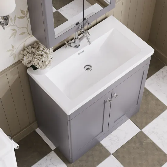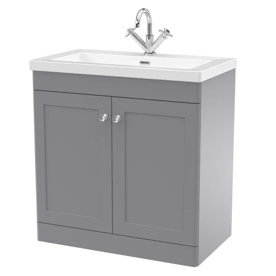 nuie Classique 800mm Floor Standing 2-Door Vanity with Basin - 1 Tap Hole - Satin Grey
