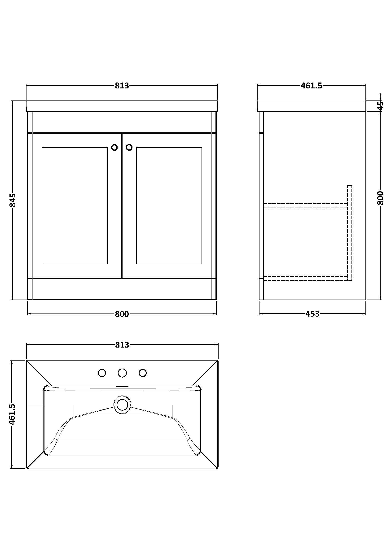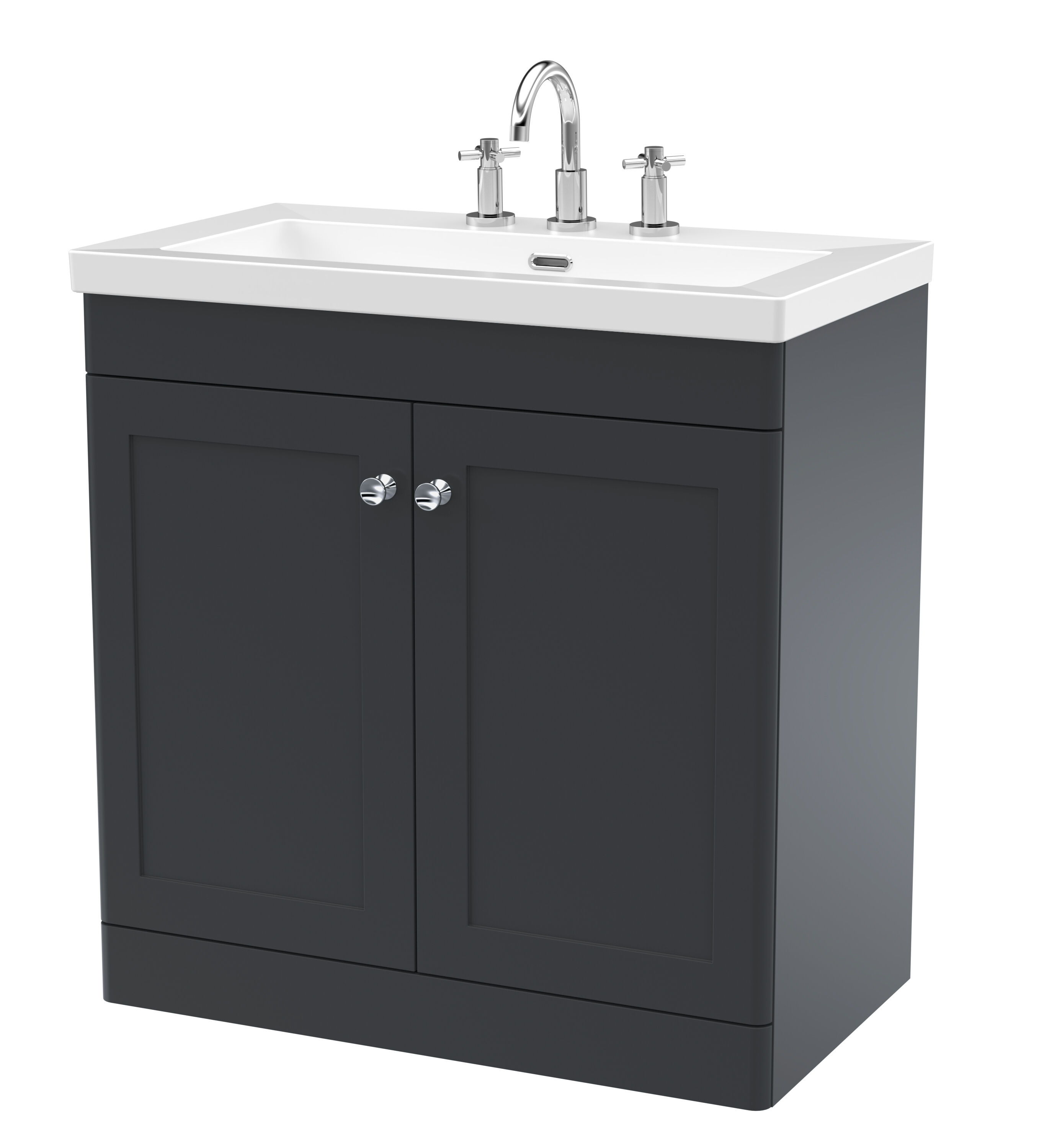 nuie Classique 800mm Floor Standing 2-Door Vanity with Basin - 3 Tap Hole - Soft Black