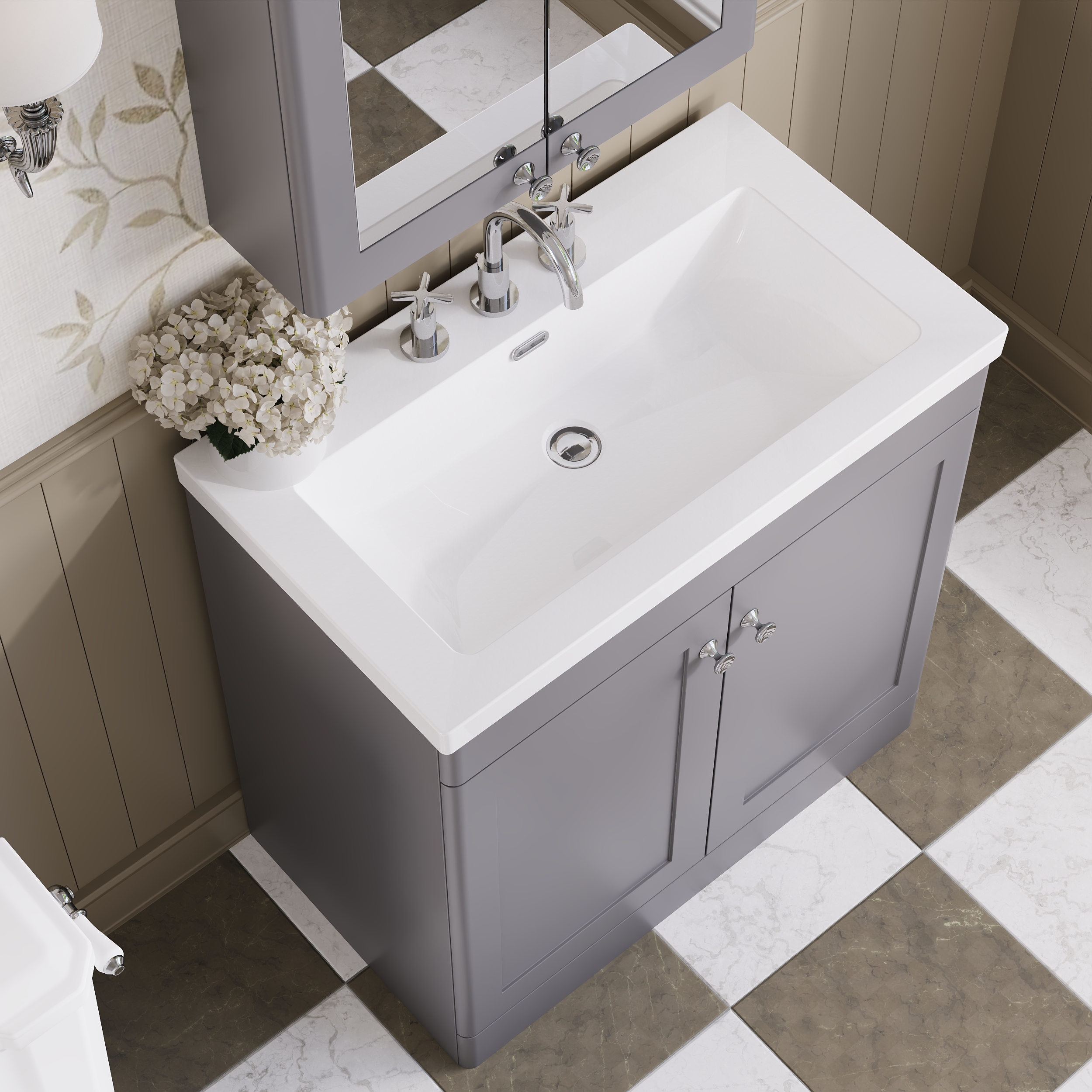 nuie Classique 800mm Floor Standing 2-Door Vanity with Basin - 3 Tap Hole - Satin Grey