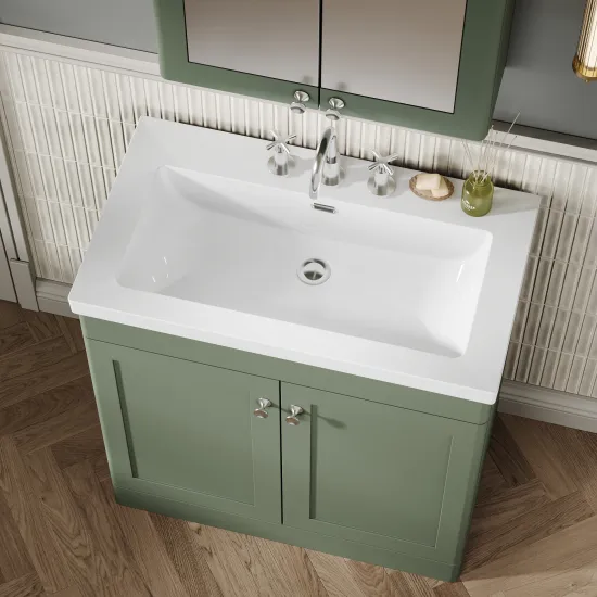 nuie Classique 800mm Floor Standing 2-Door Vanity with Basin - 3 Tap Hole - Satin Green