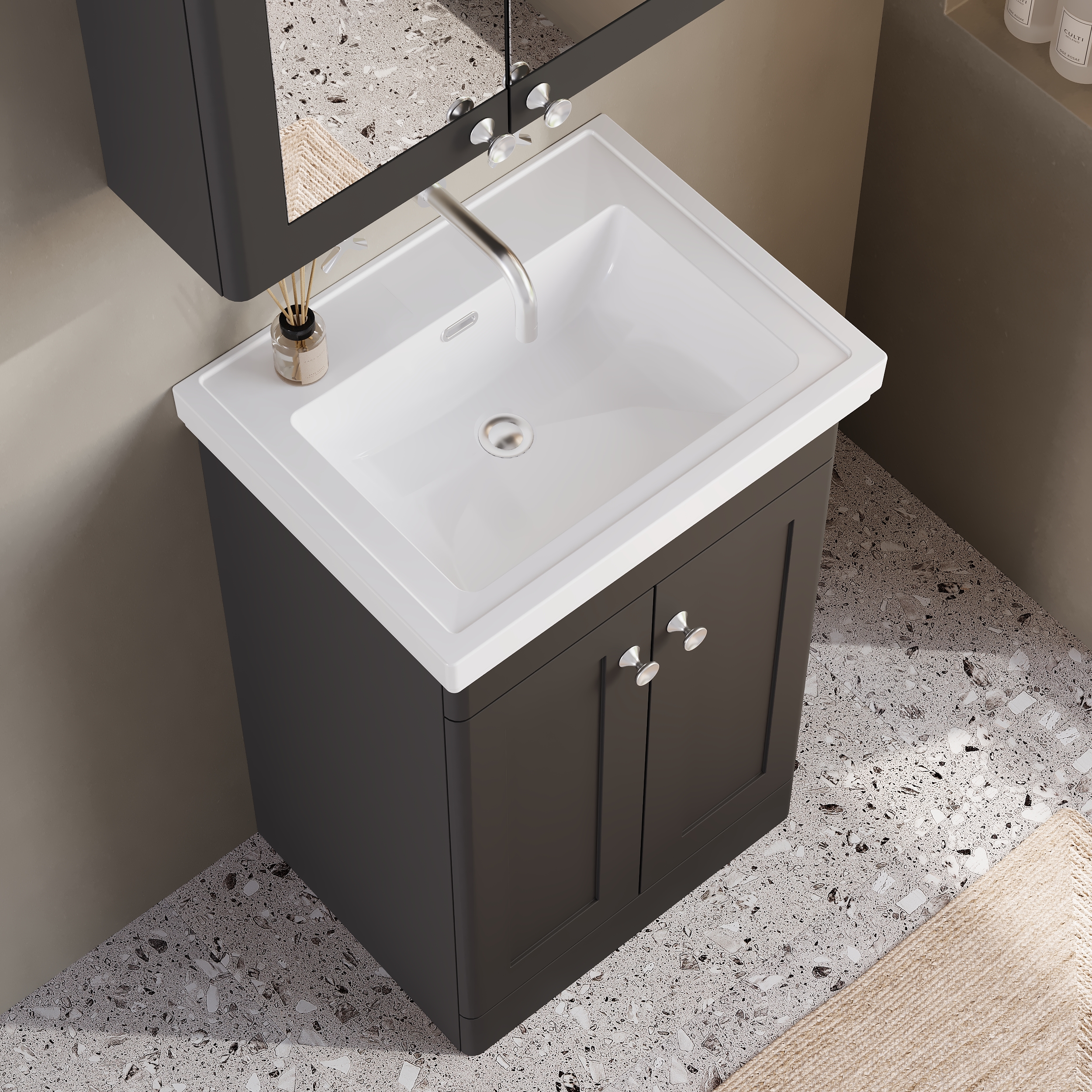 Nuie Classique 500mm Satin Grey Floor Standing 2 Door Vanity Unit With Basin