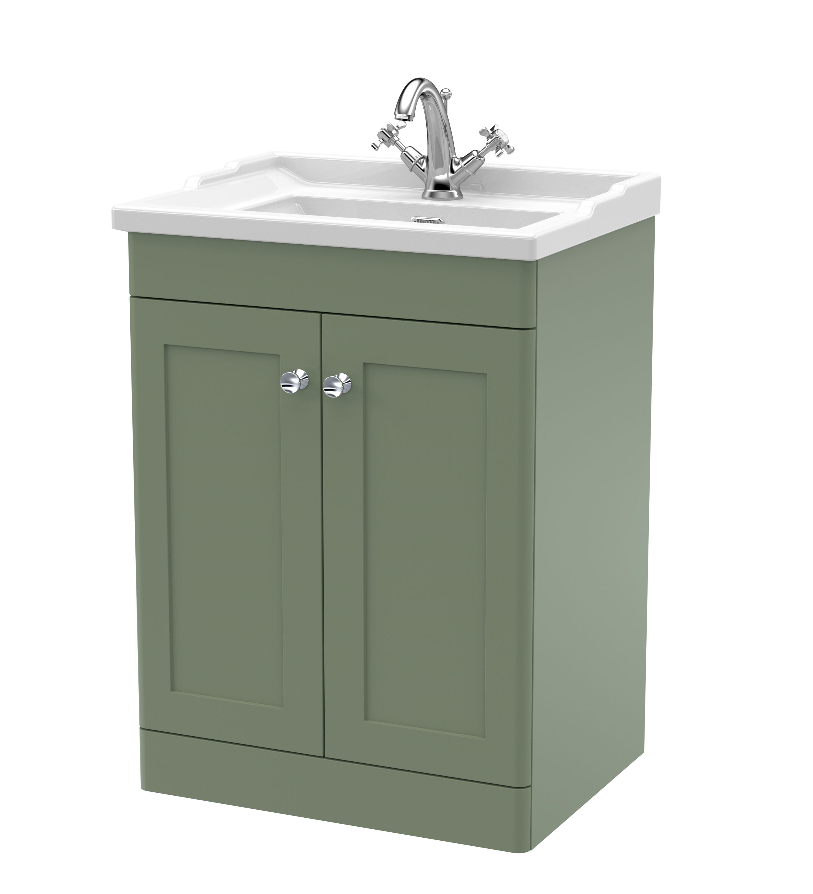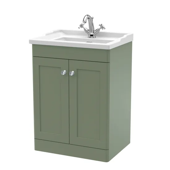 Nuie Classique 600mm Traditional Satin Green Floor Standing 2 Door Vanity Unit with 1 Tap Hole Basin
