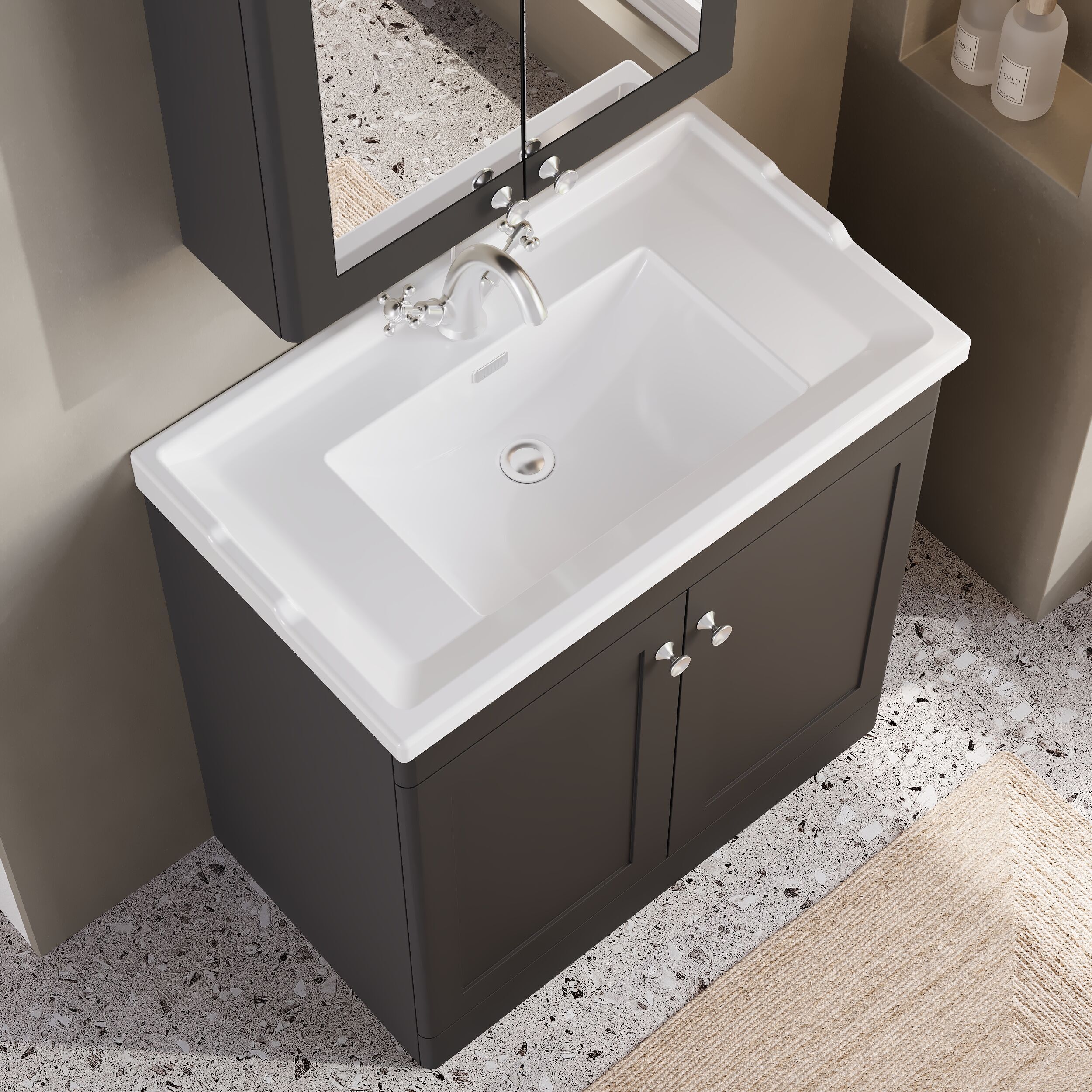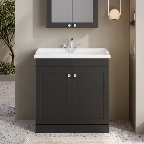 Nuie Classique 830mm Soft Black Floor Standing 2 Door Vanity Unit with 3 Tap Hole Basin