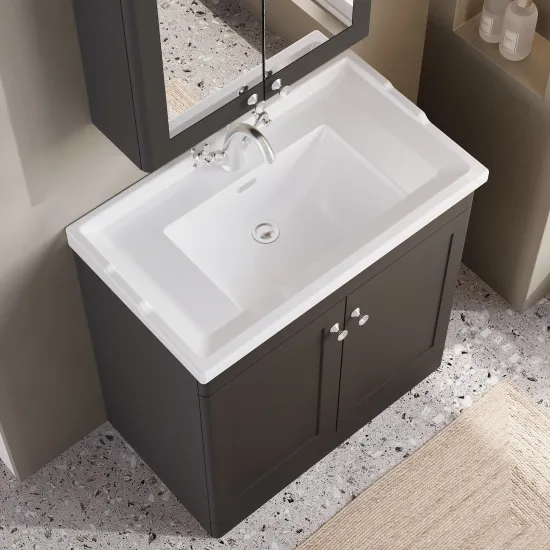 Nuie Classique 830mm Soft Black Floor Standing 2 Door Vanity Basin Unit With Handles