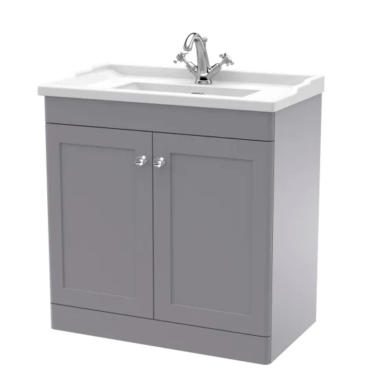 Nuie Classique 800mm Satin Grey Floor Standing 2 Door Vanity Unit with 3 Tap Hole Basin