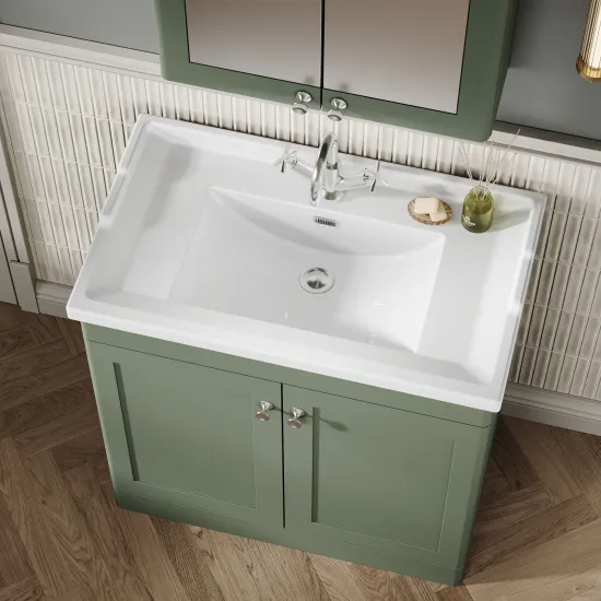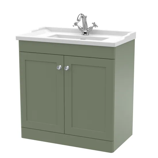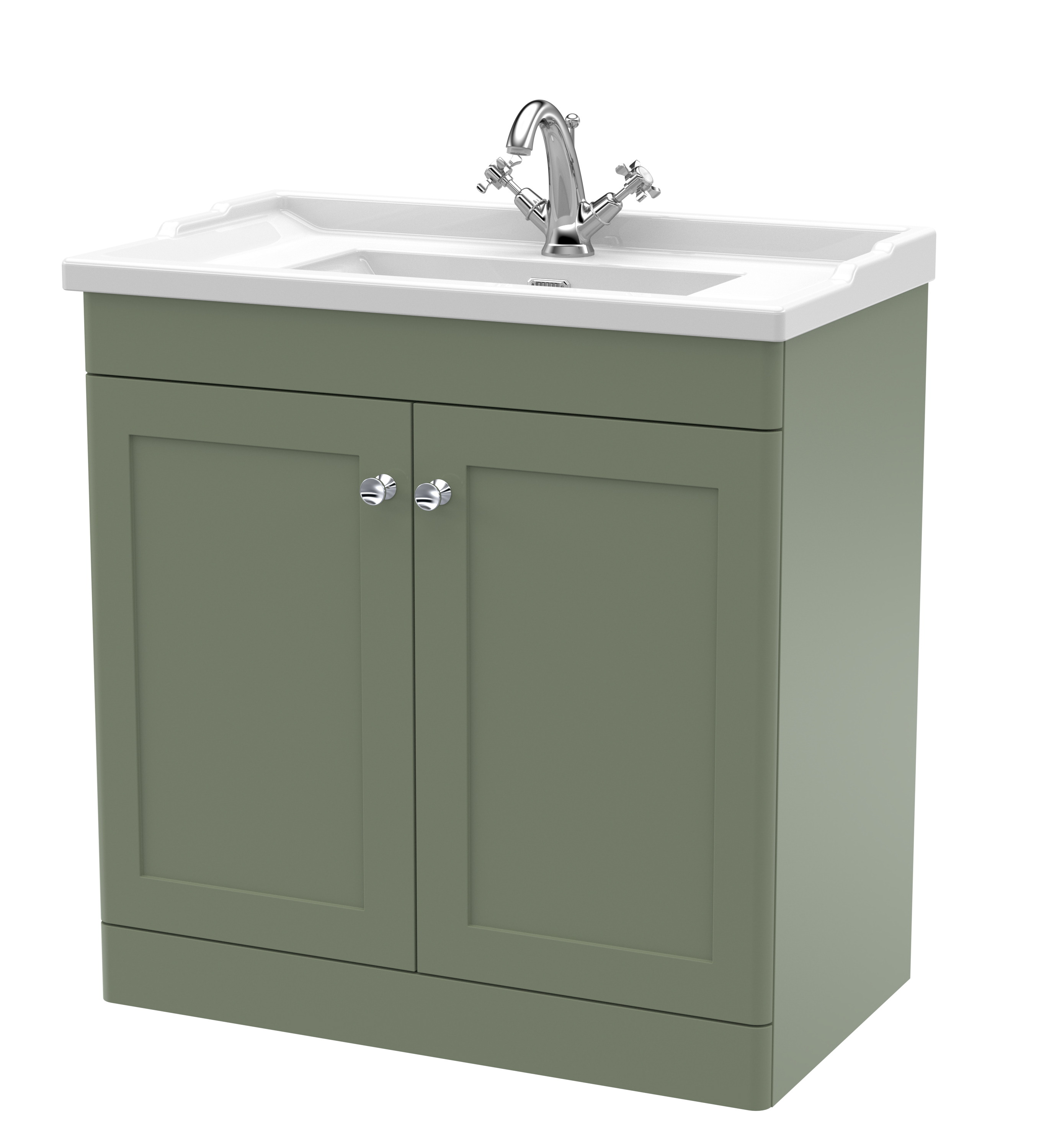 Nuie Classique 820mm Satin Green Floor Standing Vanity Unit with Basin & Handles