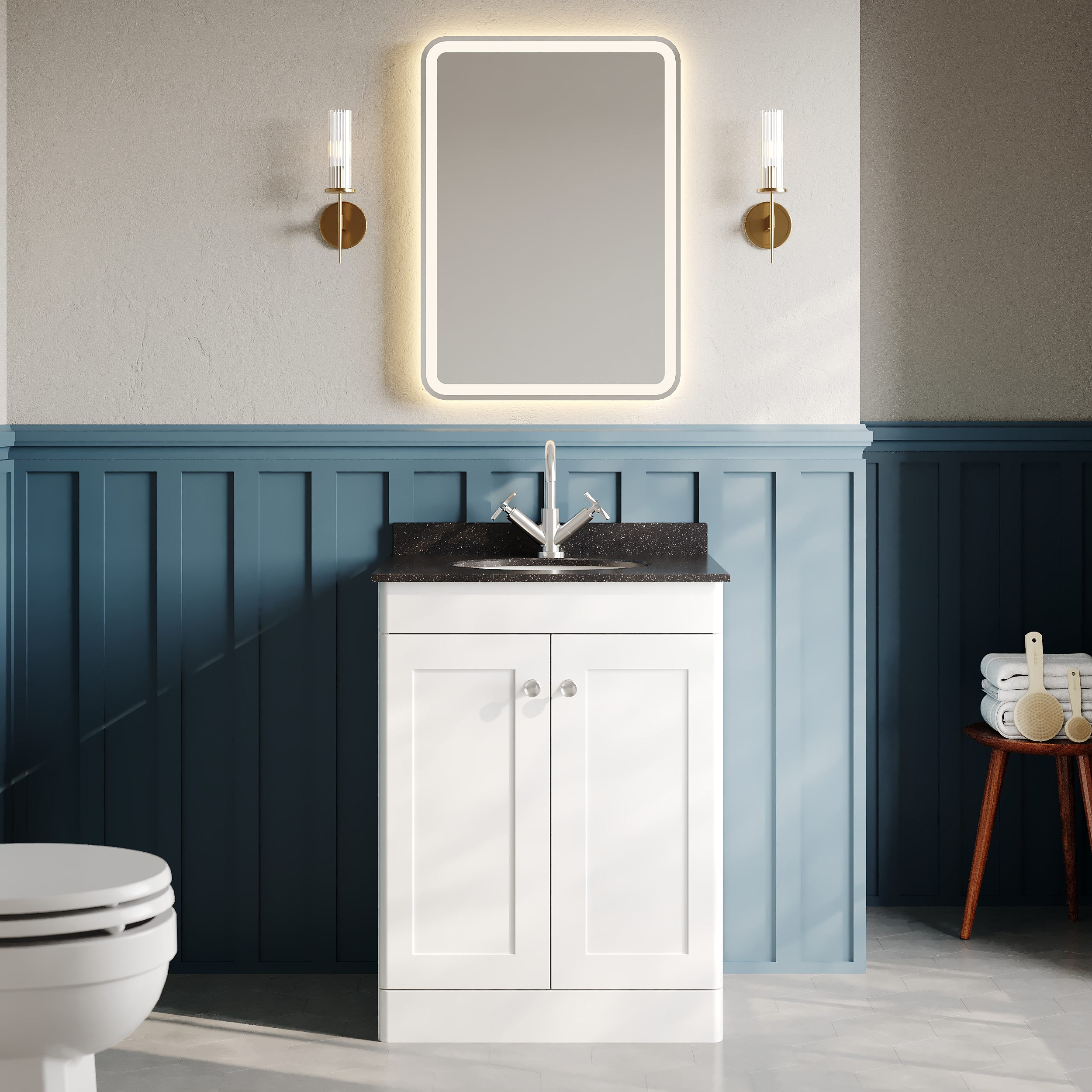 Nuie Classique 600mm Satin White Floor Standing 2 Door Vanity Basin Unit Including Basin