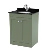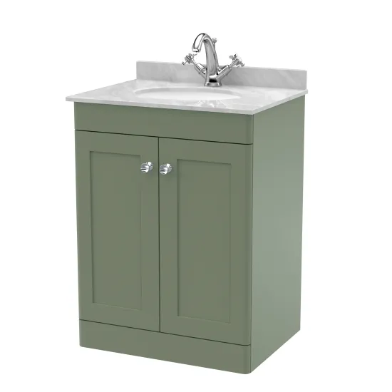 Nuie Classique 600mm Traditional Satin Green Floor Standing 2 Door Vanity Unit with 1 Tap Hole Basin