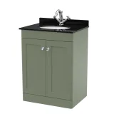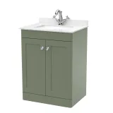 Nuie Classique 600mm Satin Green Floor Standing 2 Door Vanity Unit & Basin With 1 Tap Hole