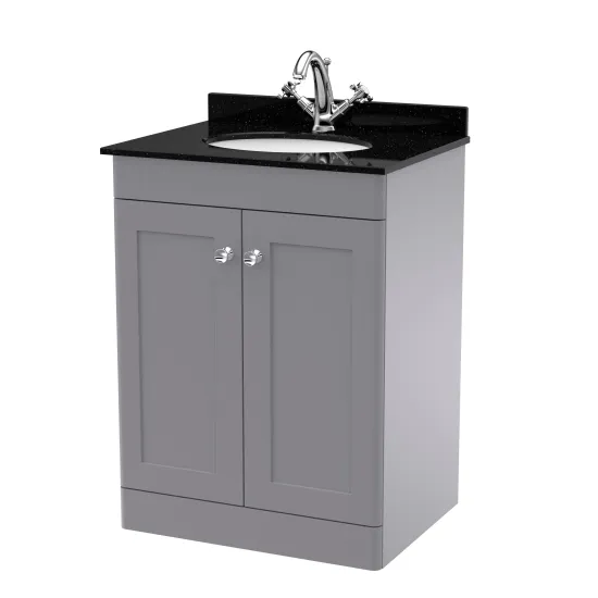 Nuie Classique 600mm Floor Standing 2 Door Vanity Unit With Marble Top & Underslung Basin, 1 Tap Hole