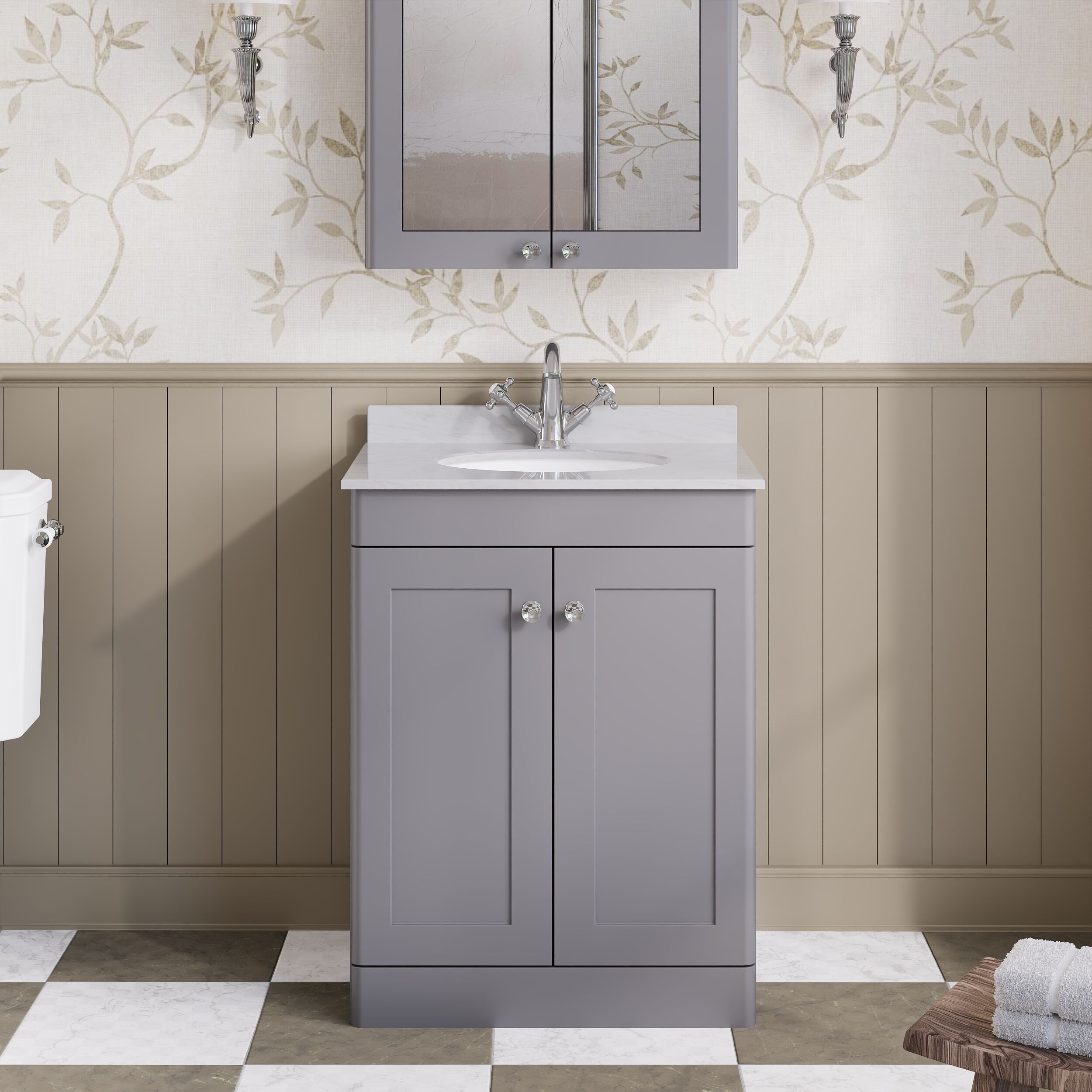 Nuie Classique 620mm Floor Standing 2 Door Vanity Unit With 1 Tap Hole Basin