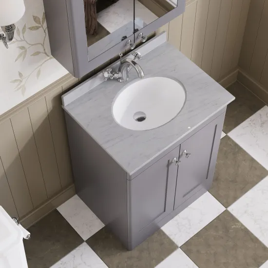 Nuie Classique 600mm Satin Grey 2 Door Floor Standing Vanity Unit With 1 Tap Hole & Soft Close Doors