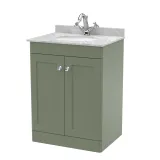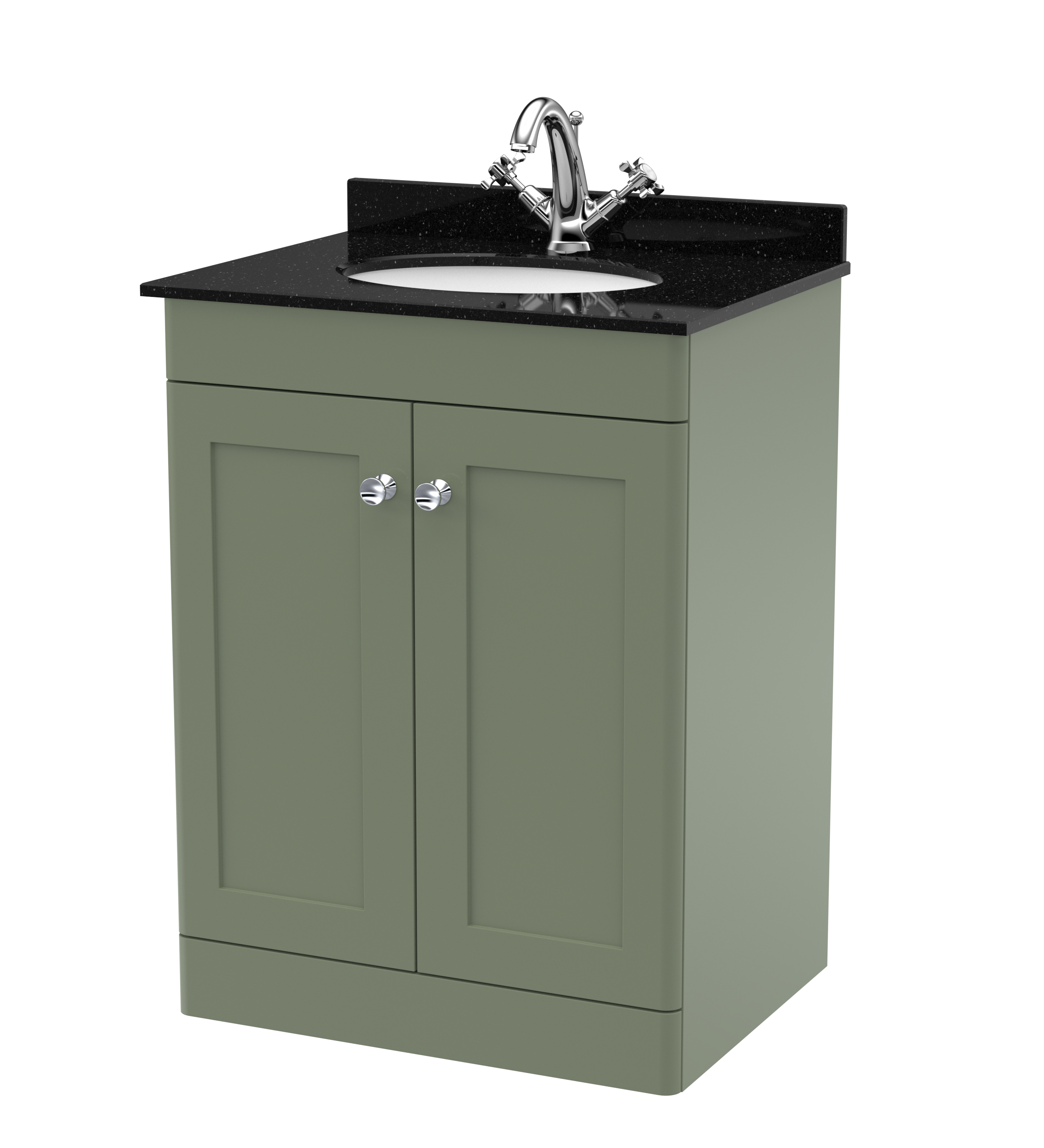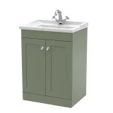Nuie Classique 600mm Satin Green Floor Standing 2 Door Vanity Unit & Basin With 1 Tap Hole