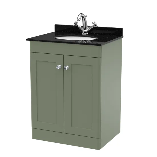 Nuie Classique 600mm Satin Green Floor Standing 2 Door Vanity Unit with 3 Tap Hole Basin