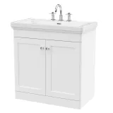 Nuie Classique 800mm Satin White Floor Standing 2 Door Vanity Unit with 3 Tap Hole Basin