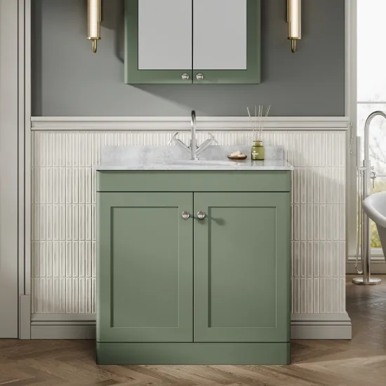 Nuie Classique 800mm Satin Green Floor Standing Vanity Unit With Basin & Backsplash