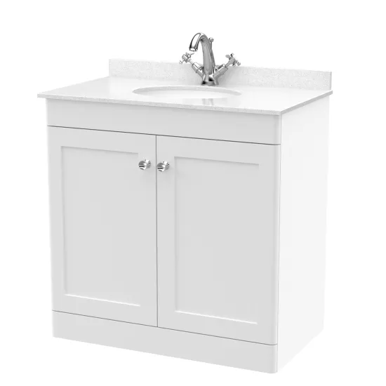 Nuie Classique 800mm Satin White Floor Standing 2 Door Vanity Unit with 3 Tap Hole Basin