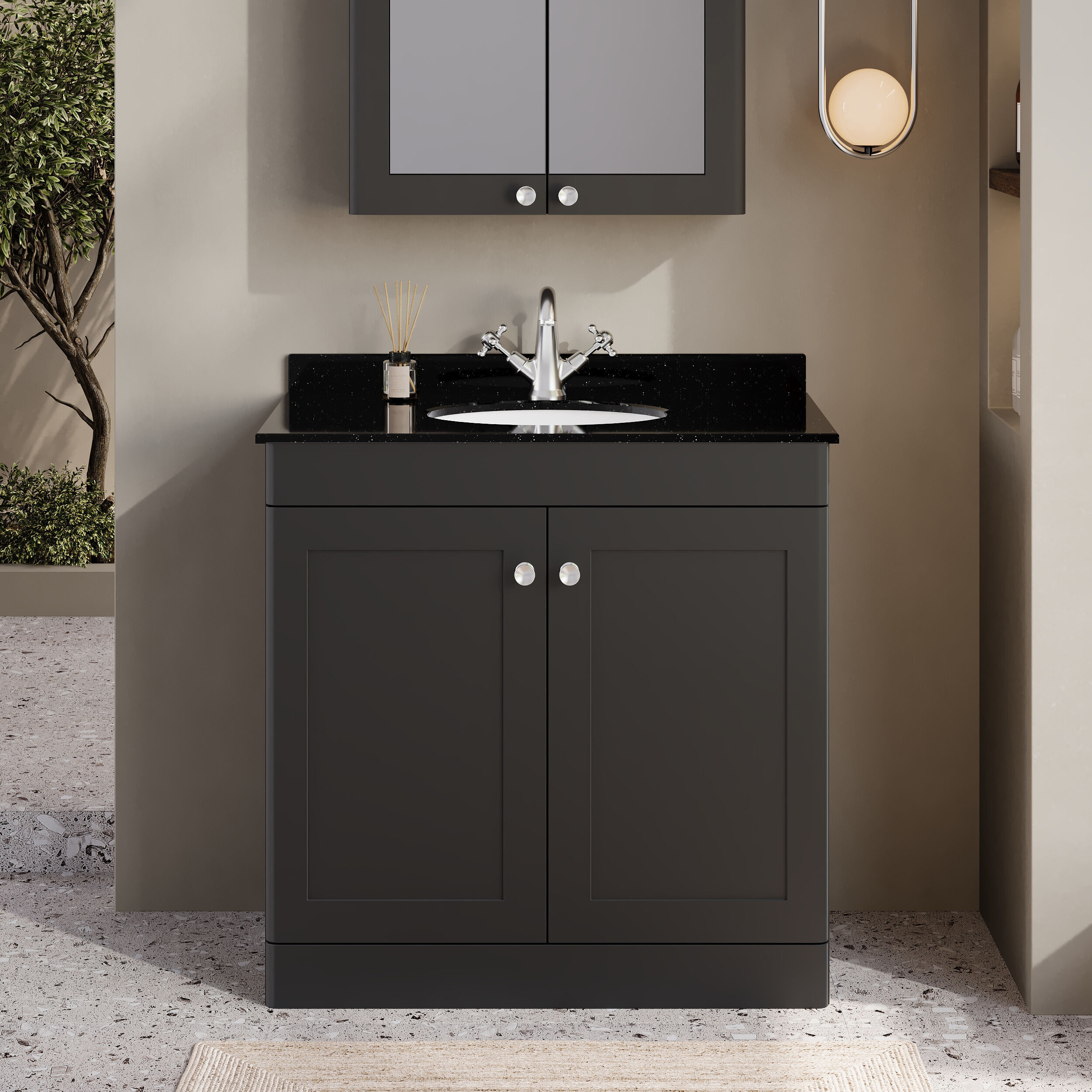 Nuie Classique 830mm Soft Black Floor Standing 2 Door Vanity Unit with 3 Tap Hole Basin