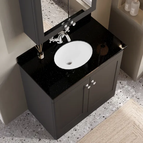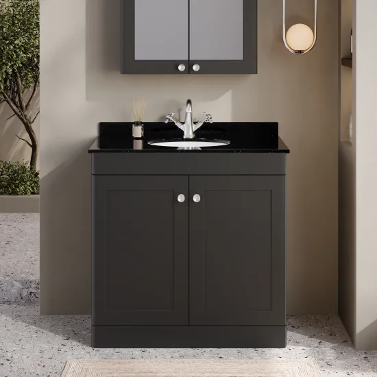 Nuie Classique 830mm Soft Black Floor Standing 2 Door Vanity Basin Unit With Handles