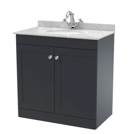 Nuie Classique 830mm Soft Black Floor Standing 2 Door Vanity Unit with 3 Tap Hole Basin