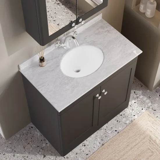 Nuie Classique 830mm Soft Black Floor Standing 2 Door Vanity Basin Unit With Handles