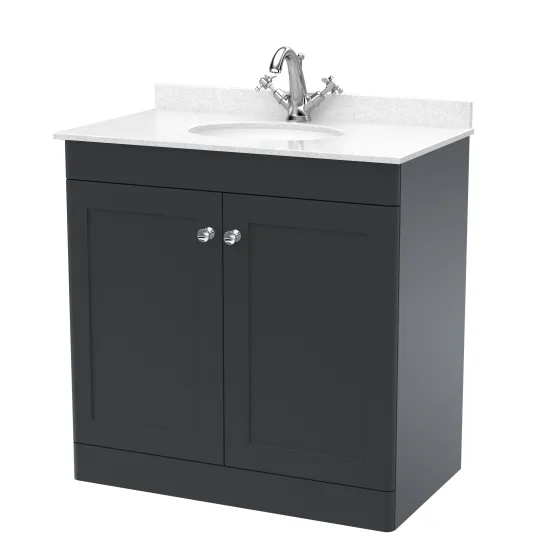 Nuie Classique 830mm Soft Black Floor Standing 2 Door Vanity Unit with 3 Tap Hole Basin