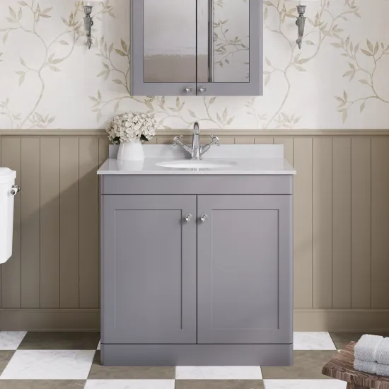 Nuie Classique 820mm Satin Grey Floor Standing Vanity Unit With Basin & Backsplash