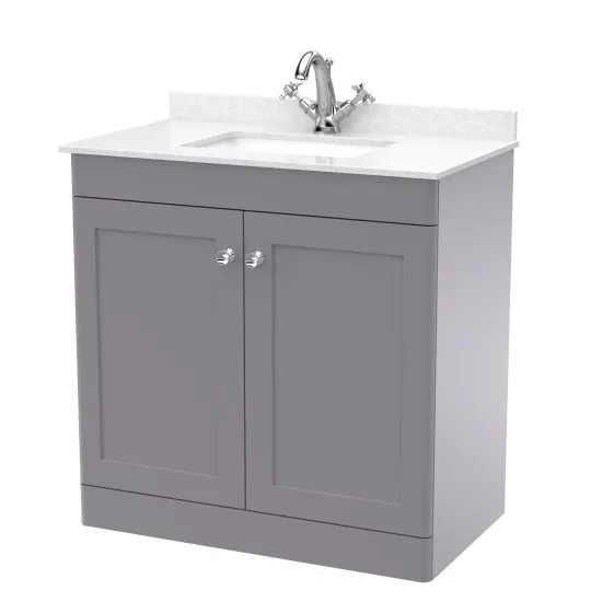 Nuie Classique 800mm Satin Grey Floor Standing 2 Door Vanity Unit with 3 Tap Hole Basin