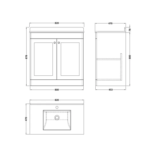 Nuie Classique 800mm Floor Standing Vanity Unit With Basin