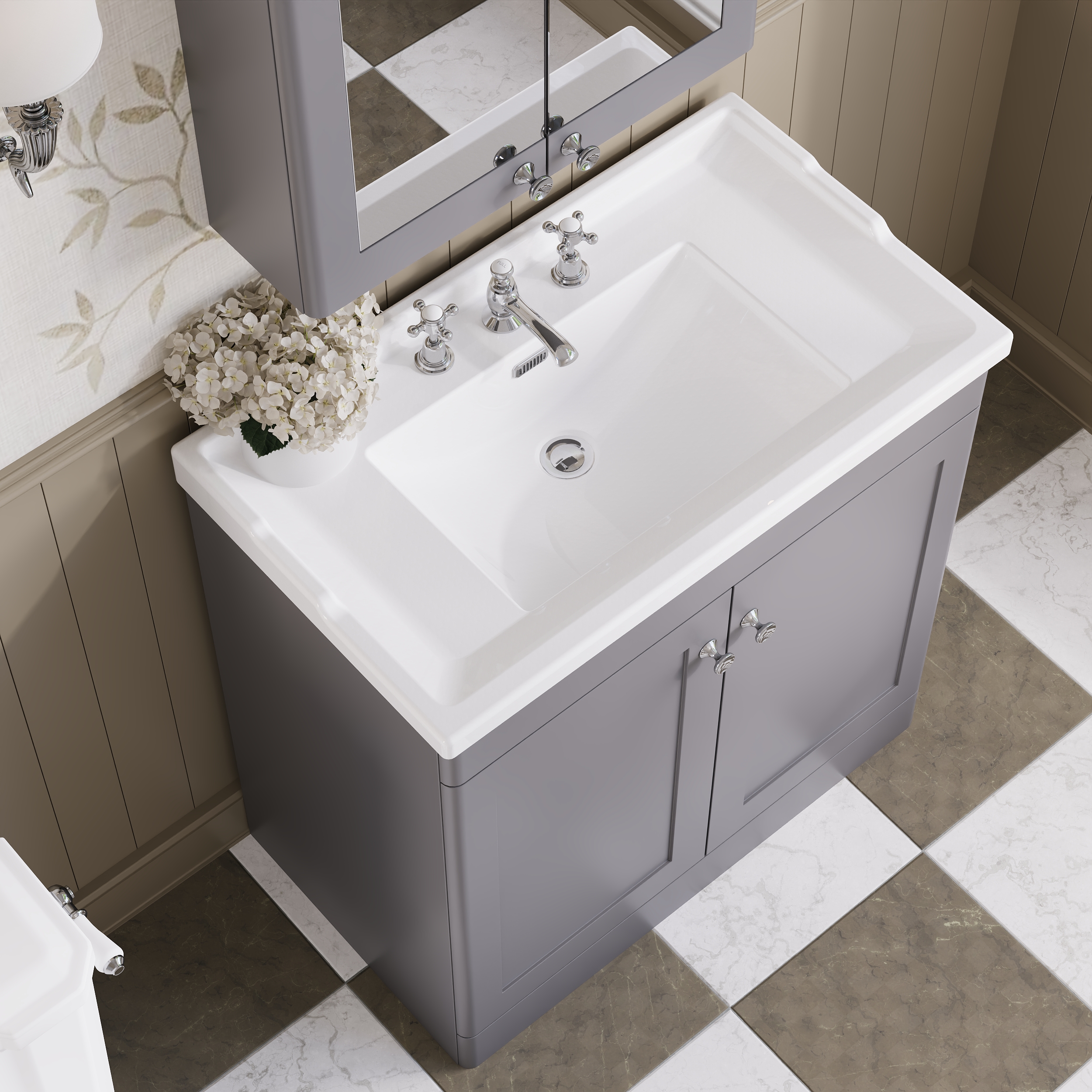 Nuie Classique 820mm Satin Grey Floor Standing 2 Door Vanity Unit with 1 Tap Hole Basin
