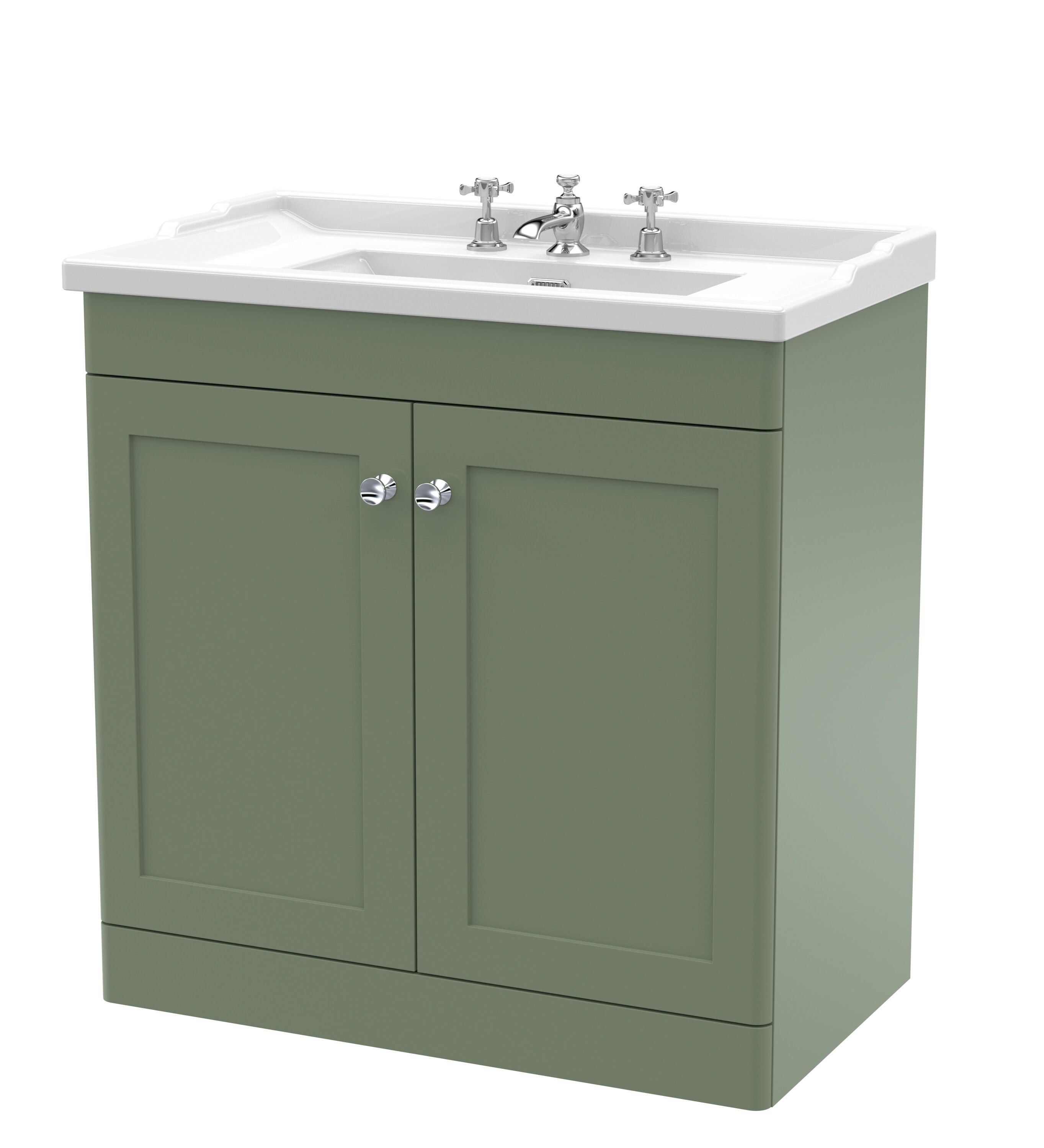 Nuie Classique 800mm Satin Green Floor Standing 2 Door Vanity Unit With Basin, 3 Tap Holes & Backsplash