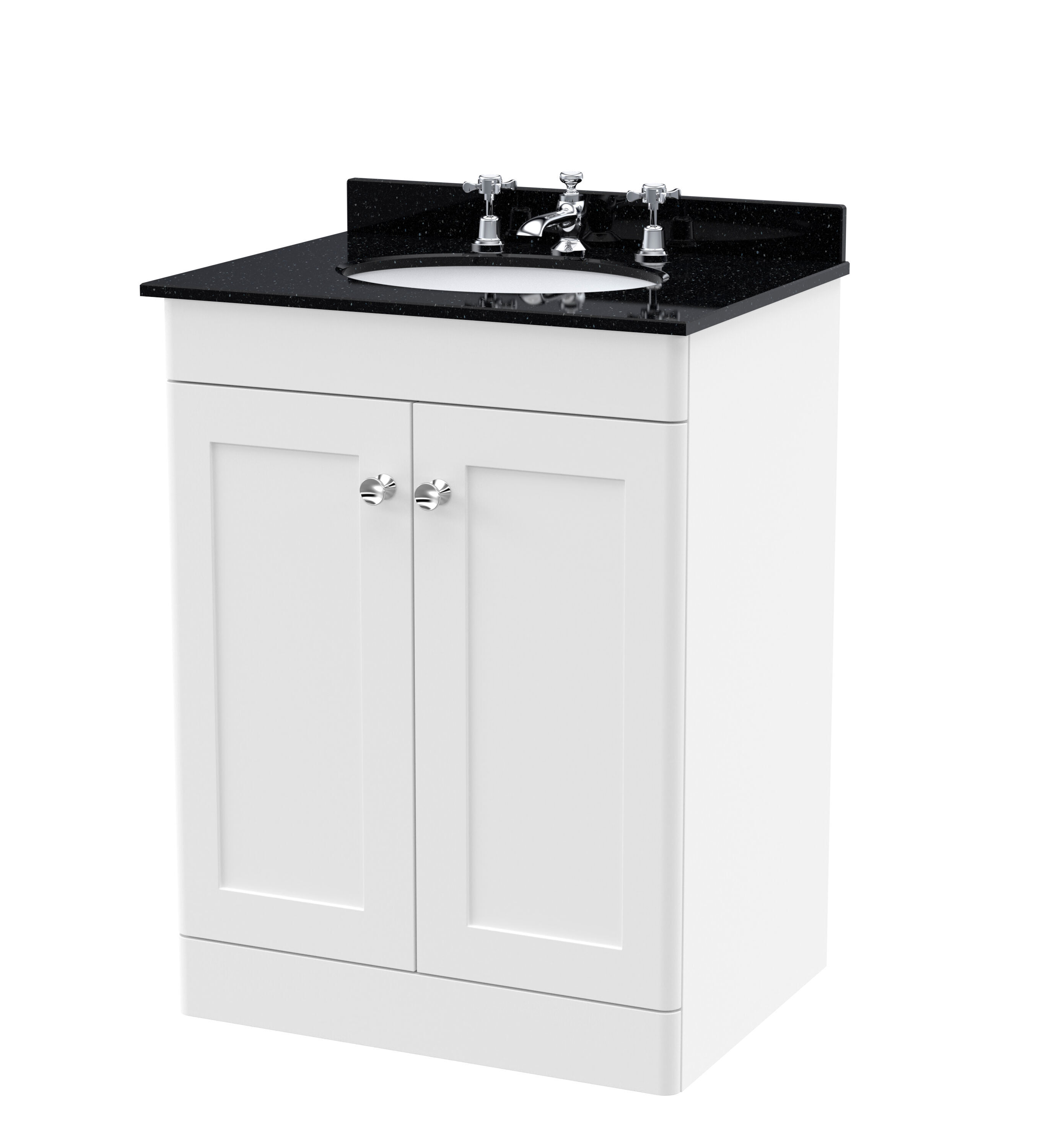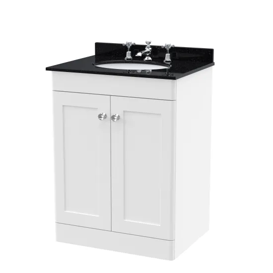 Nuie Classique 600mm Satin White Floor Standing 2 Door Vanity Basin Unit With 3 Tap Hole Basin
