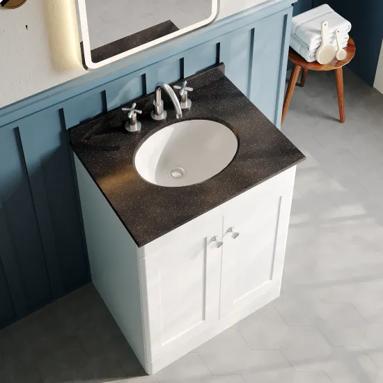 Nuie Classique 600mm Satin White Floor Standing 2 Door Vanity Basin Unit Including Basin