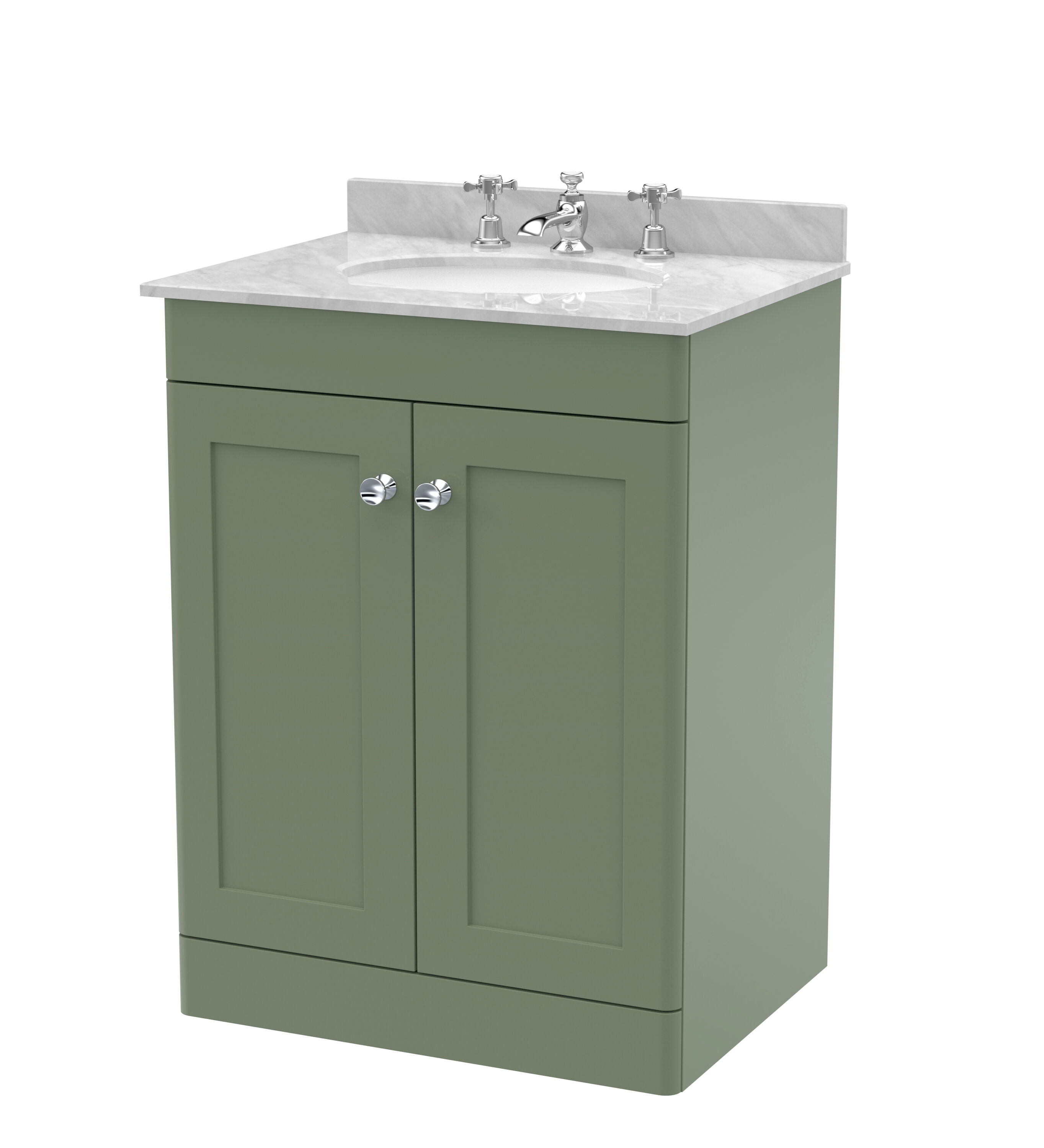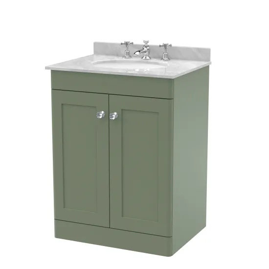 Nuie Classique 600mm Satin Green Floor Standing 2 Door Vanity Unit with 3 Tap Hole Basin