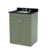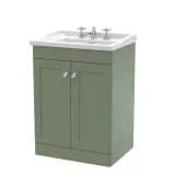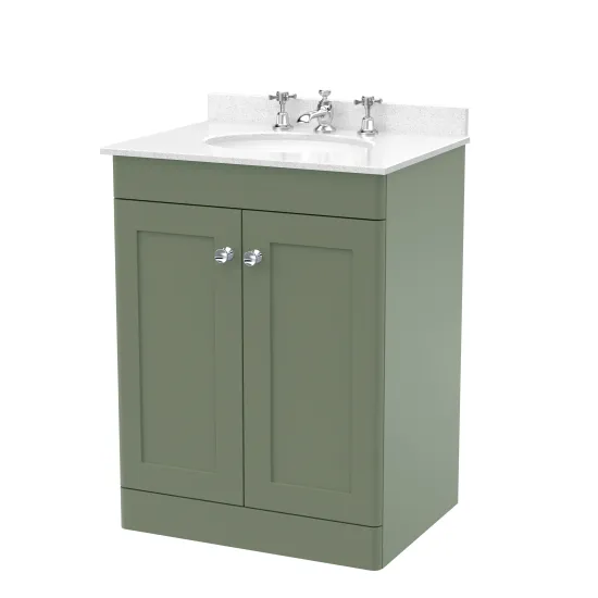 Nuie Classique 600mm Satin Green Floor Standing 2 Door Vanity Unit with 3 Tap Hole Basin
