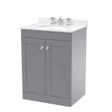 Nuie Classique 600mm Satin Grey Traditional Floor Standing 2 Door Vanity Unit With 3 Tap Hole Basin