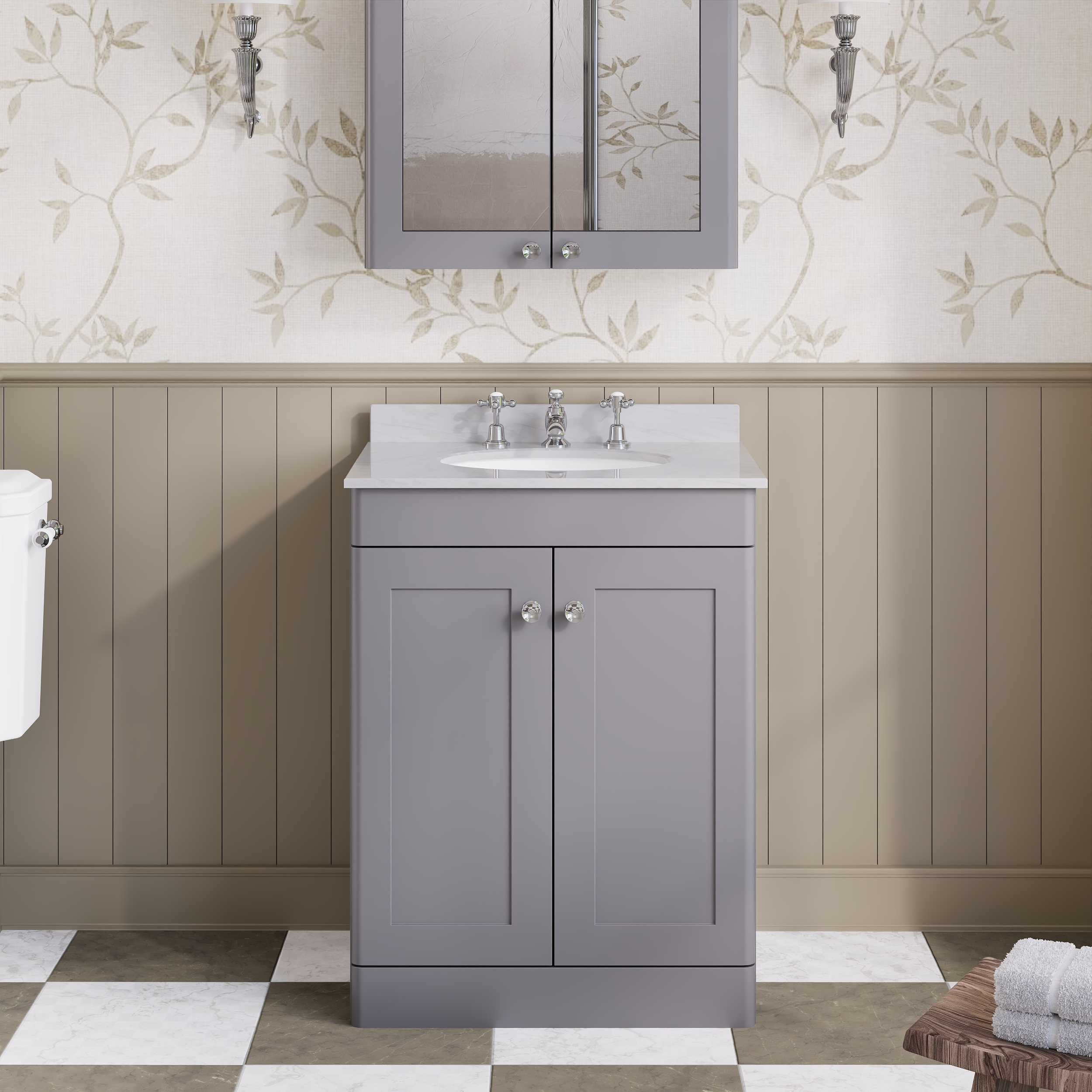 Nuie Classique 600mm Satin Grey Floor Standing Vanity Unit With 3 Tap Hole Basin
