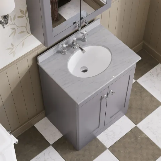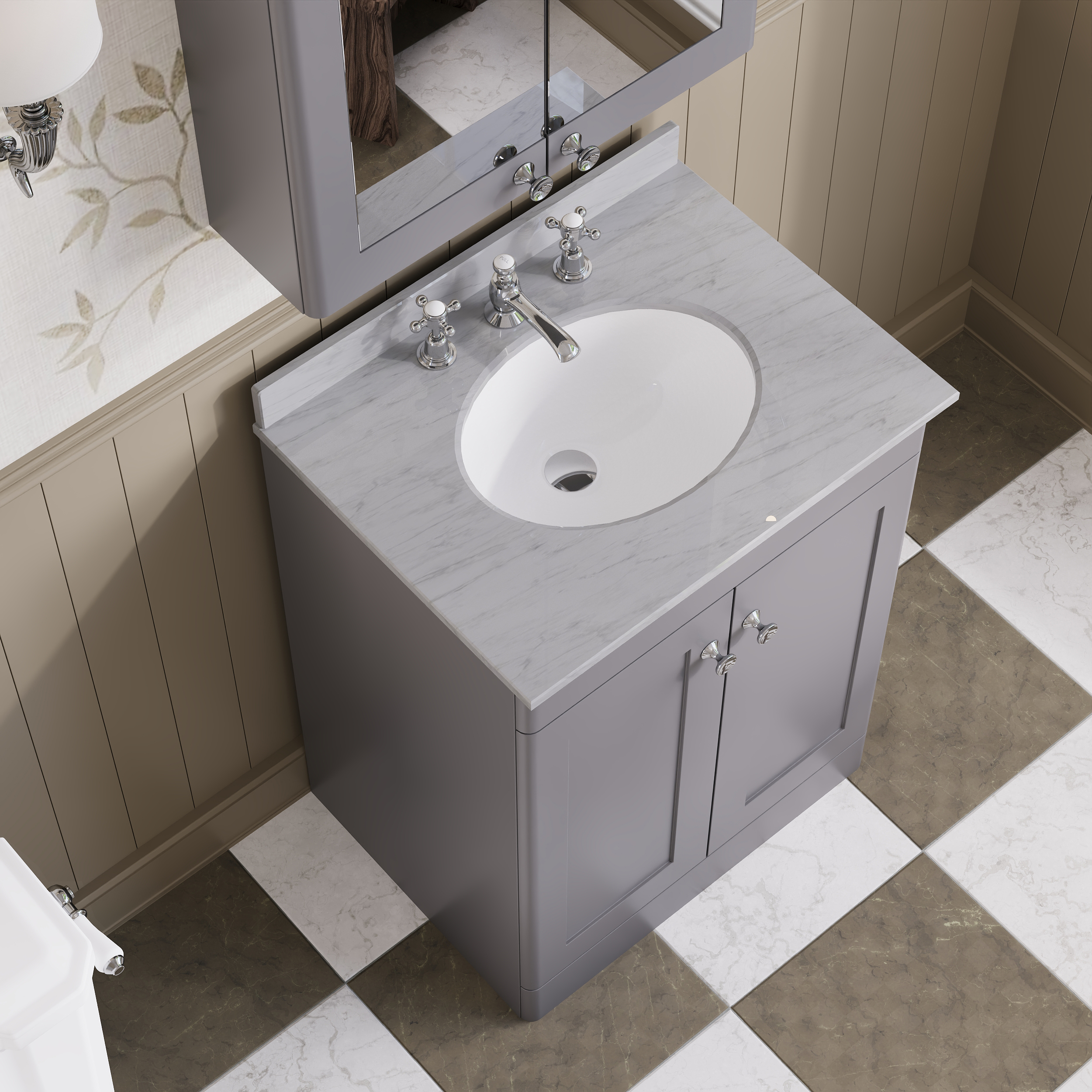 Nuie Classique 600mm Satin Grey 2 Door Floor Standing Vanity Unit With 1 Tap Hole & Soft Close Doors
